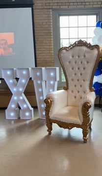 We offer luxury Throne chair rentals that include delivery, setup and pickup. We are a local small business and love what we do. Book your next special event with us at Royal Throne Chair Rentals!
